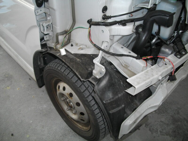 今回の修理では、フロントバンパーやヘッドランプを交換し、フロントフェンダーとフードパネルを板金で修復しました。リサイクル部品も活用し、保険修理で費用負担を抑えながら、見た目と安全性の両立を実現しています。