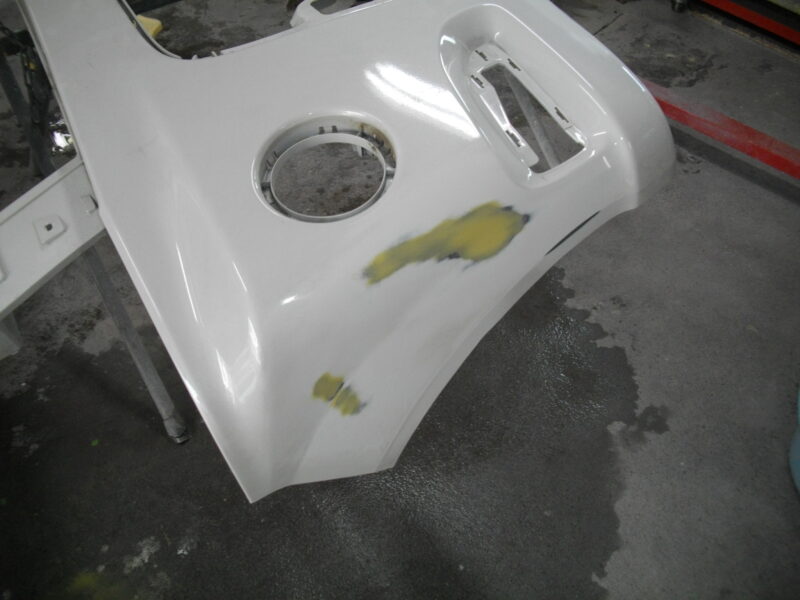 フロントフェンダーやフードパネルのへこみや歪みを板金で修正。再発防止のため、防錆処理や補強を丁寧に施しました。