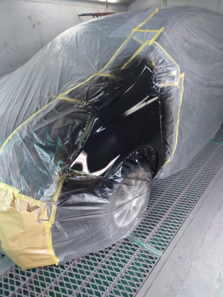 左右フロントフェンダーは、板金塗装で丁寧に修理し、ボディラインを自然に復元。塗装は2K塗料、2コートソリッドで隣接パネルと違和感のない仕上がりに調整しました。
