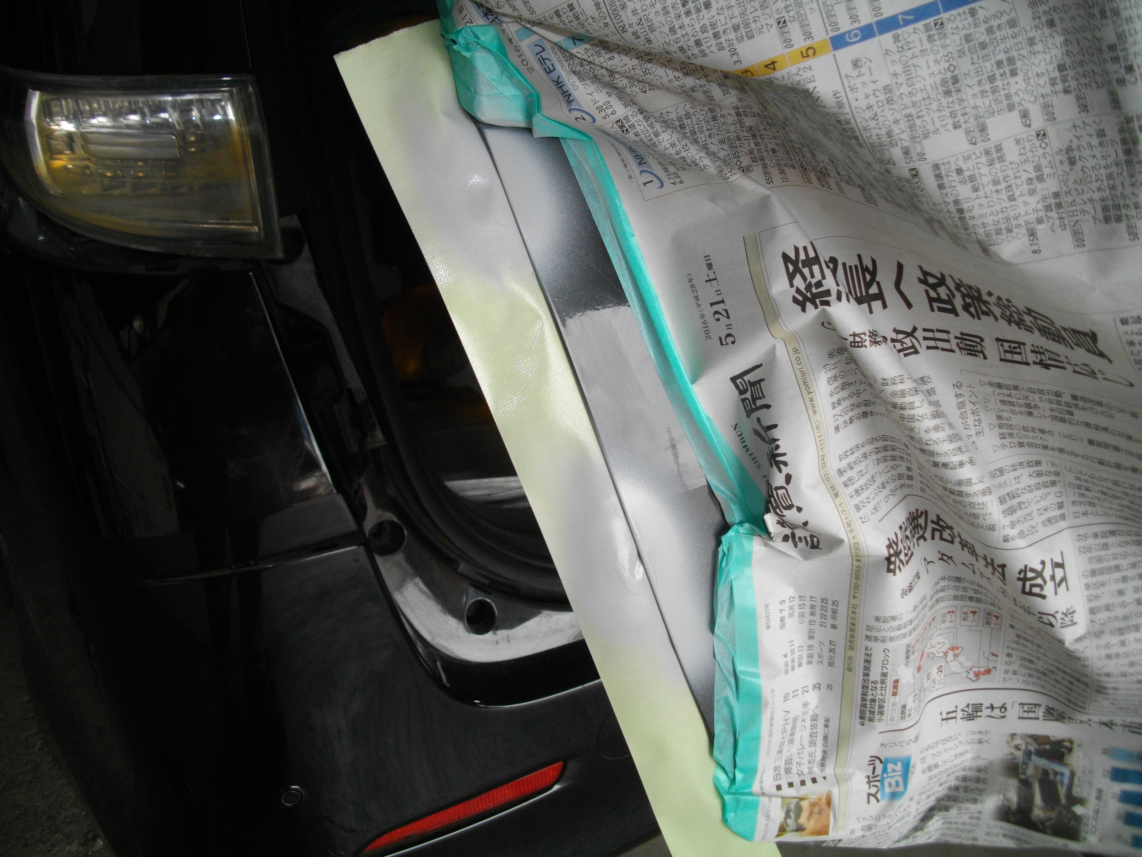 新品のリヤバンパーと修正したバックドアパネルの板金塗装を同時に行います。ヴェルファイアの純正色に合わせた2コートソリッド塗料で、ムラなく深い艶を再現します。 - STEP 5: 部品の組み付けと最終機能チェック