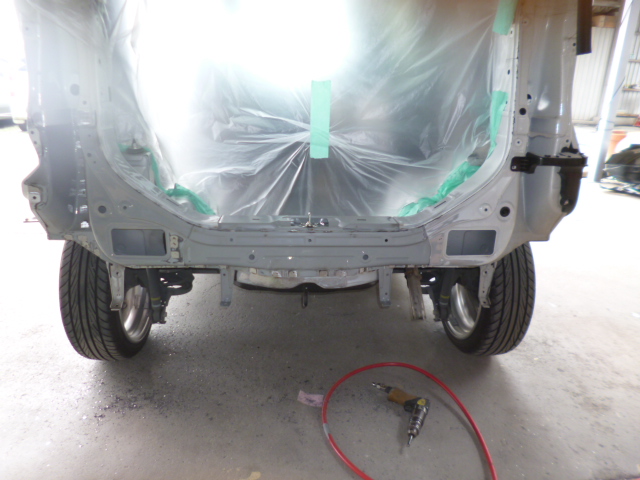 必要なパーツ交換と板金修理を組み合わせて、2K塗装でオリジナルカラーを忠実に再現。フロアやサイドメンバーも修復し、リヤまわり全体を美しく仕上げます。
