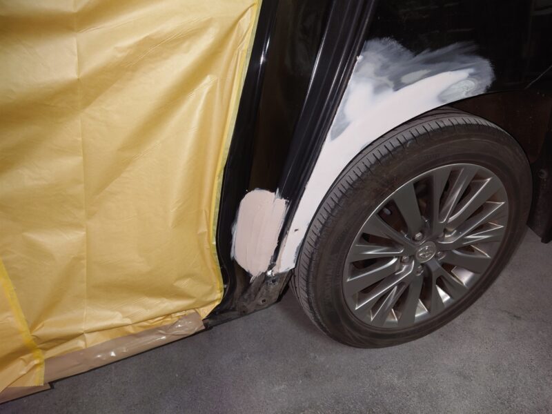 アルファードは全長・全幅が大きく、側面のヘコミやキズは目立ちやすい状態でした。リアドア・サイドステップ・リアフェンダーを丁寧に板金し、塗装で色むらや段差が出ないように仕上げました。