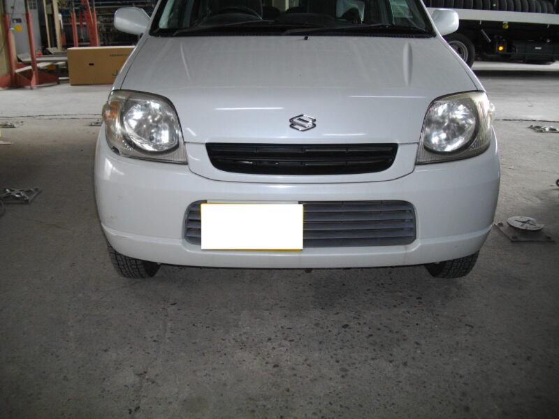 今回の【鈑金塗装・キズ修理】は、スズキKeiの右フロントフェンダーとバンパーの**へこみ修理**のご依頼です。