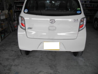 【車 傷 修理】桐生市|ダイハツ ミラのリヤバンパー&クォータパネル修理事例