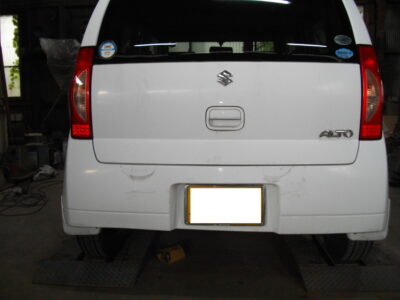 【伊勢崎市のお客様】軽自動車/スズキ・アルトのリヤバンパー交換とバックドア鈑金事例!