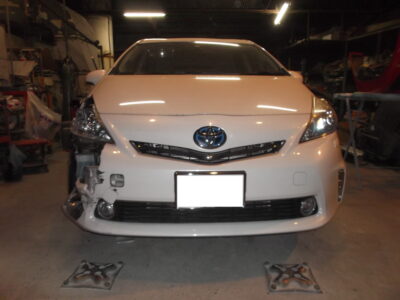 【車修理】プリウスα フロント大破事故の復元|バンパー交換・フェンダー鈑金・ボンネット修理|桐生市のお客様