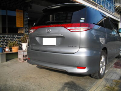 【エスティマ修理事例】リヤバンパー+バンパーピース交換で元通りに!|桐生市のお客様